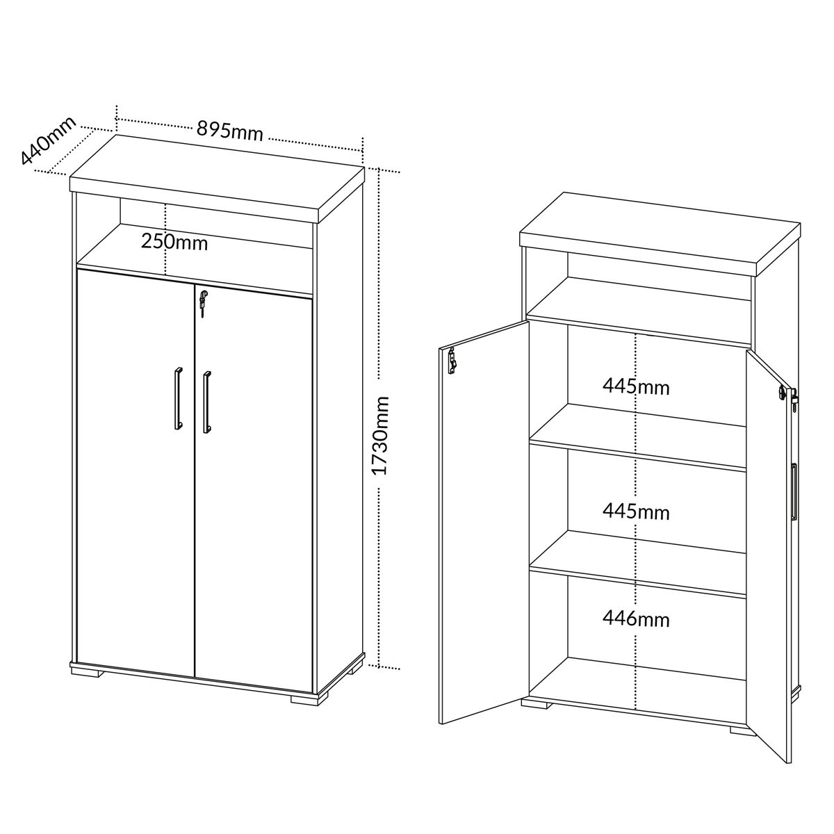 | Dimensões (L×A×P) | 90 cm × 1,73 m × 44 cm |