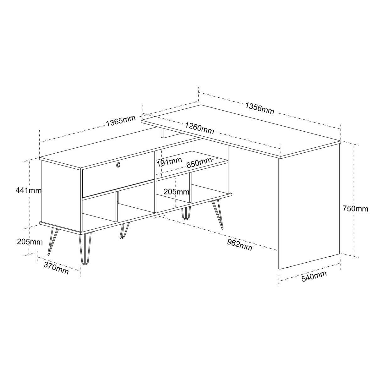 Torne seu ambiente mais bonito e produtivo com esta linda Escrivaninha em L, perfeita para tornar os momentos de trabalho ou estudo mais agradáveis! Com estilo industrial, proporcionado pelos pés de metal, os famosos “Hairpin legs” trazem um ar retrô ao design, além de oferecerem uma excelente sustentação ao produto e objetos que forem colocados nele. Falando nisso, a mesa tem muito espaço de armazenamento nas prateleiras e conta com uma porta, que além de ser útil, acrescenta muito no visual. Seja como mesa para escritório, quarto, ou Home Office, a Escrivaninha Dubai é o produto ideal para um bom trabalho, com muito estilo!!