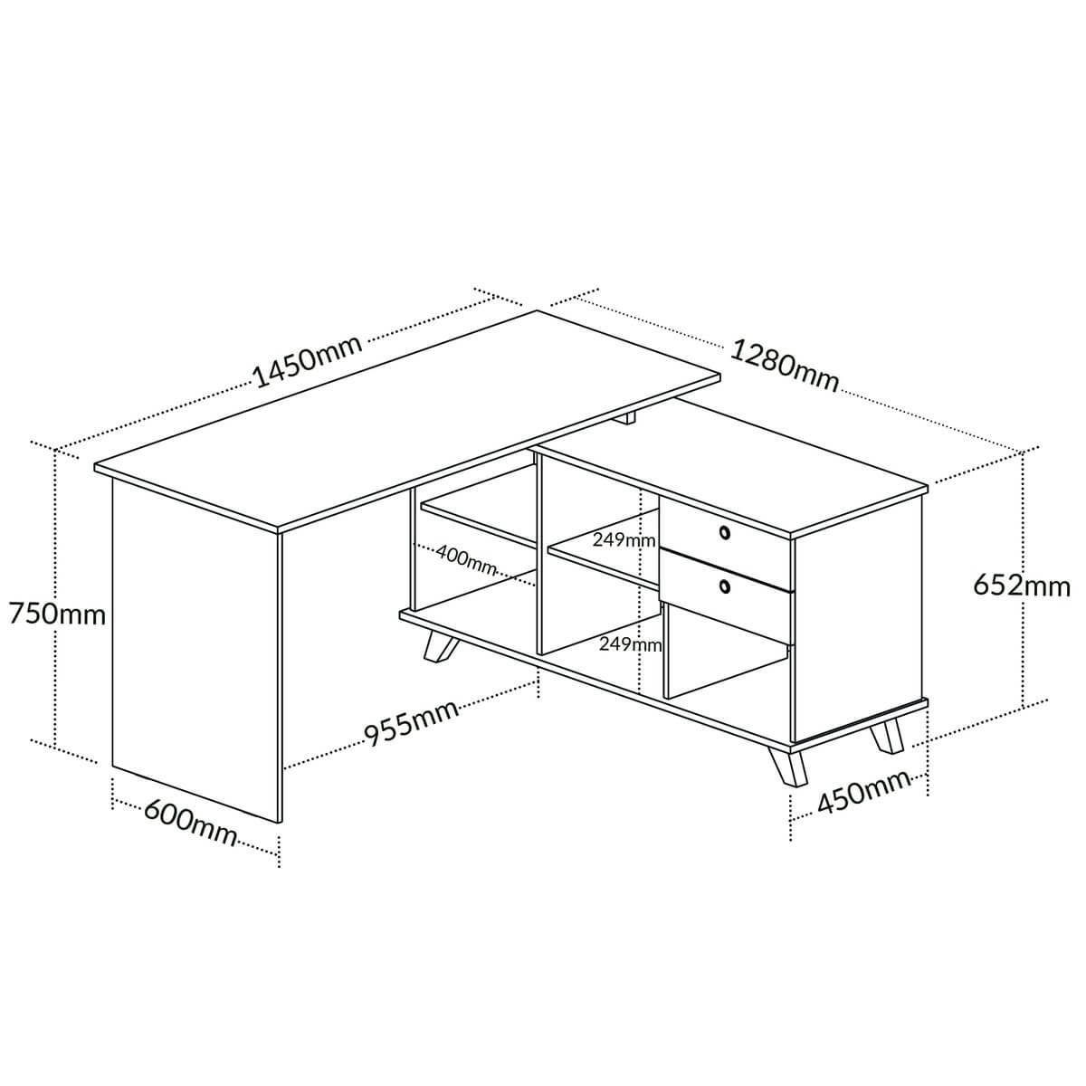 Trabalhe e estude de maneira organizada e produtiva com esta linda escrivaninha, perfeita para você transformar o ambiente em um local agradável e charmoso. Seu belo design retrô é proporcionado pelos pés angulados, detalhe que faz toda a diferença na aparência final. É muito versátil e tem estrutura flexível, podendo ser montado para o lado esquerdo ou direito, se adaptando ao seu espaço. Os nichos e as gavetas são ideais para manter o local organizado, já que guardam todos os seus objetos, livros e materiais com elegância. O amplo tampo garante muito conforto e comodidade, para você trabalhar ou estudar com muito espaço, seja em seu quarto, Home Office, ou como uma mesa de escritório. Materiais e o revestimento de alta qualidade proporcionam a beleza e alta qualidade que sua casa merece!