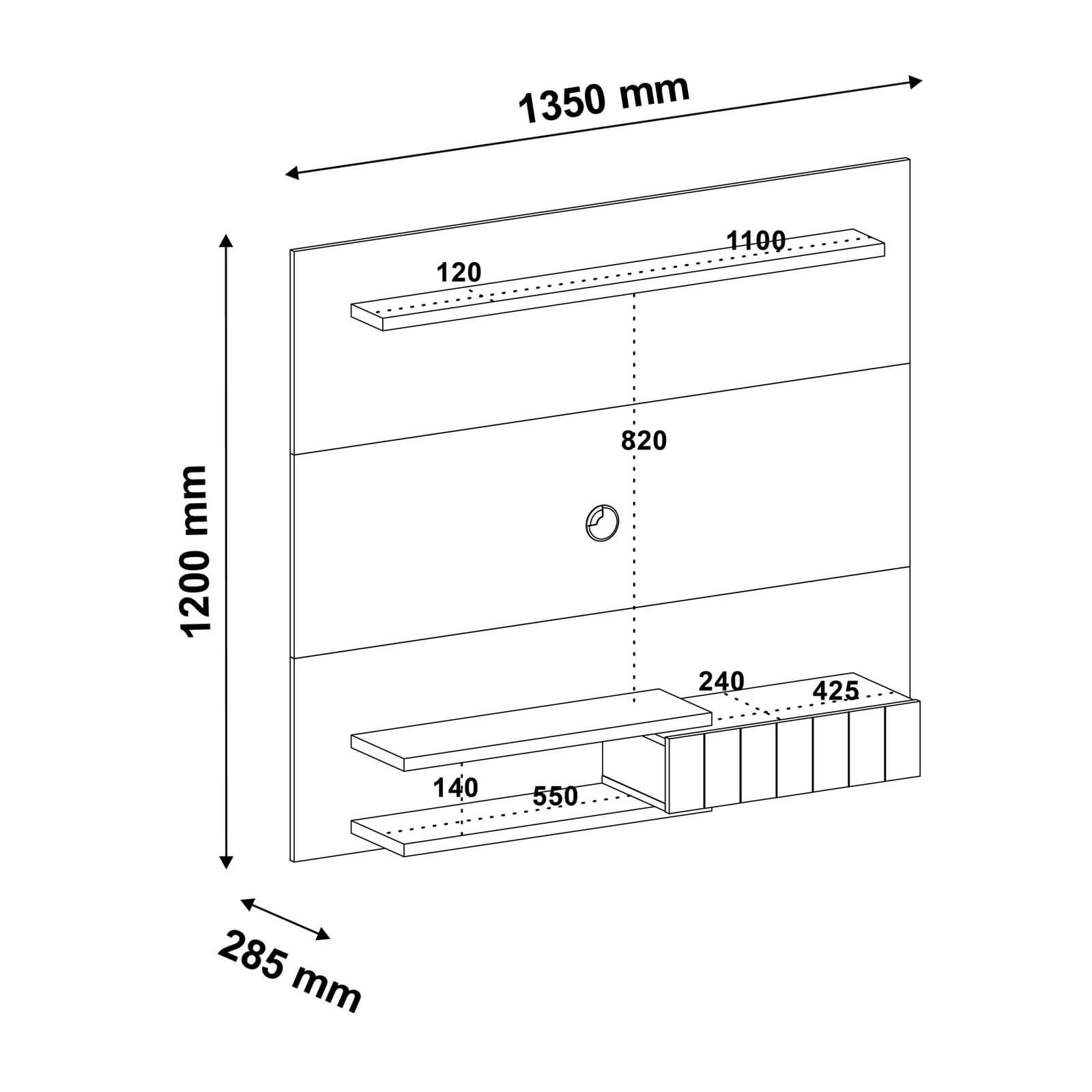 As dimensões são: 135cm de largura × 120cm de altura × 28.5cm de profundidade. Meça o espaço antes de comprar - se precisar de ajuda, chama no WhatsApp.