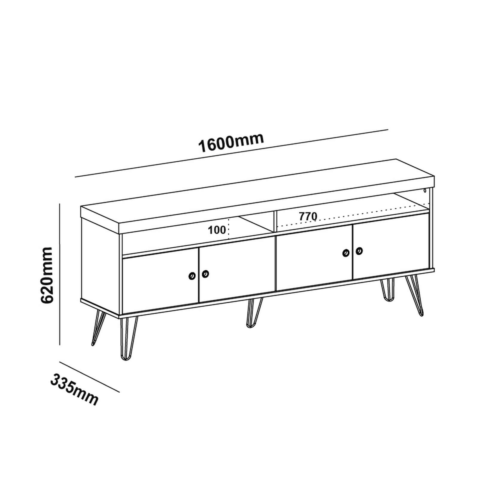 As dimensões são: 160cm de largura × 62cm de altura × 33.5cm de profundidade. Meça o espaço antes de comprar - se precisar de ajuda, chama no WhatsApp.