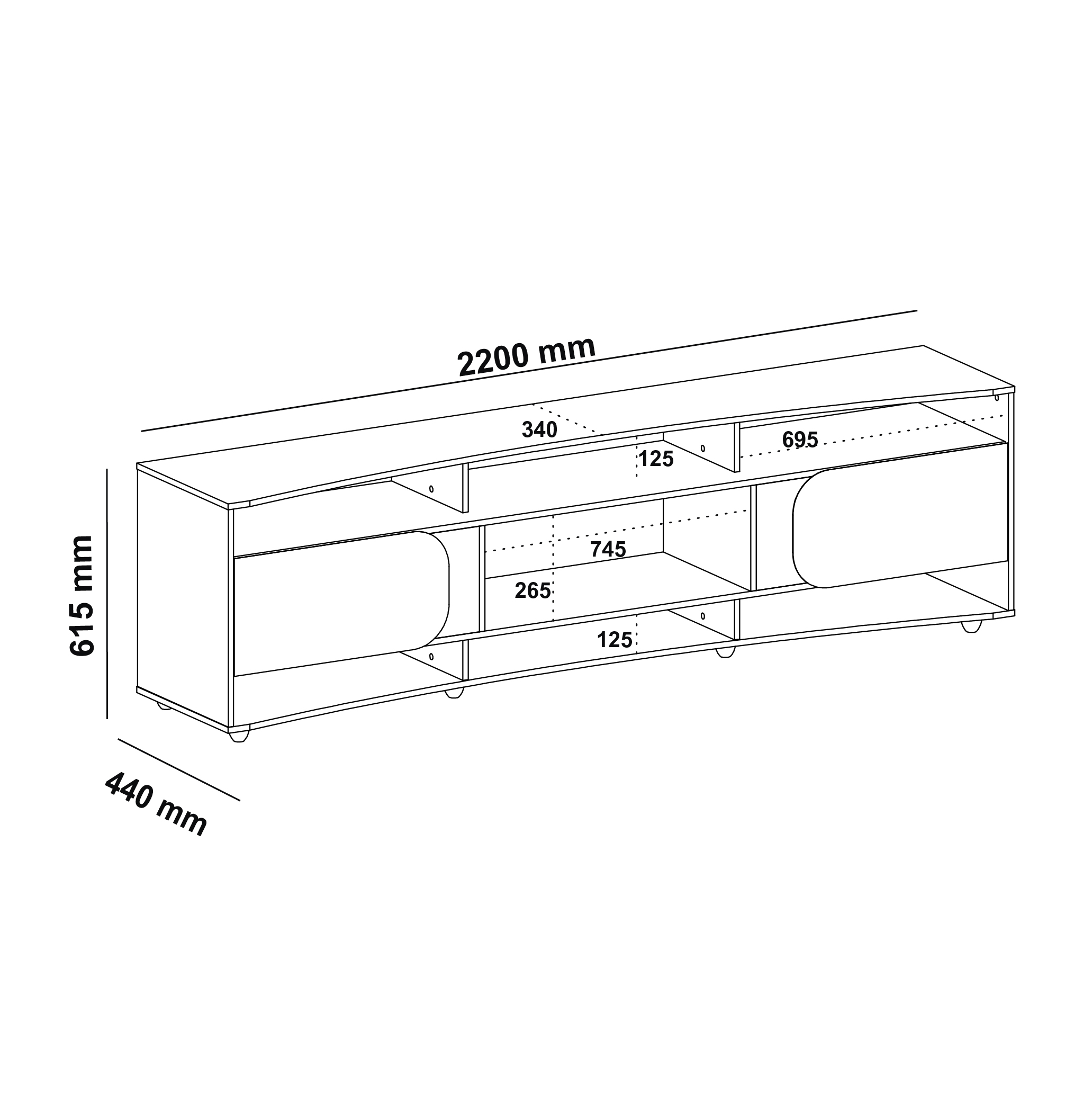 As dimensões são: 220cm de largura × 61.5cm de altura × 44cm de profundidade. Meça o espaço antes de comprar - se precisar de ajuda, chama no WhatsApp.